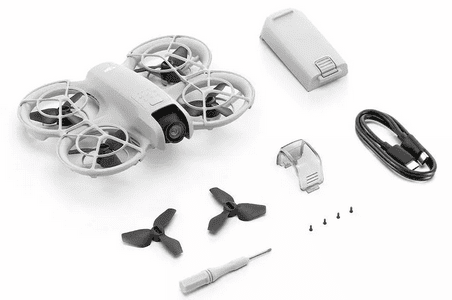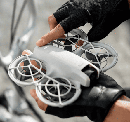 Le DJI Neo a la taille de la paume et pèse environ 135 g, ce qui facilite le rangement et le transport. Il est équipé de protections d’hélice entièrement intégrées, garantissant un vol sécurisé.