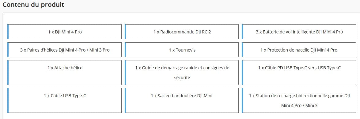 Le pack Fly More Combo est le must pour optimiser votre utilisation du DJI Mini 4 Pro. Vous y trouverez en plus du DJI Mini 4 Pro, la radiocommande DJI RC 2 avec son écran 5.5″ intégré, 3 batteries intelligentes, un étui de charge multifonction, des paires d’hélices supplémentaires et vis de rechange, mais également une sacoche de rangement.