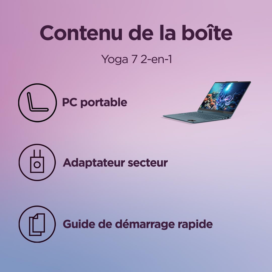 Lenovo Yoga 7 2-in-1 14AKP10 – AMD Ryzen AI 5 340, RAM 16Go, SSD 512Go, écran tactile 14″ OLED