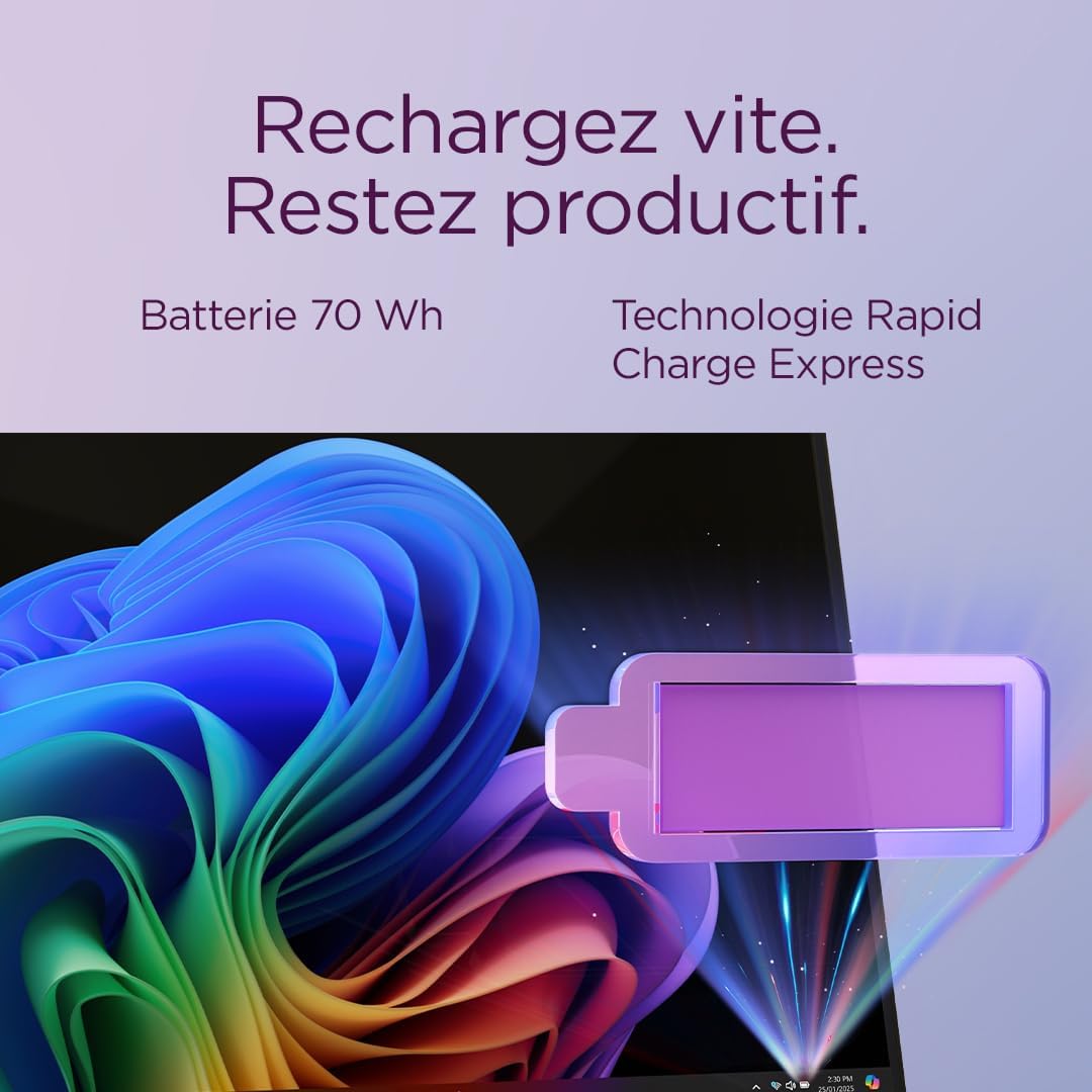 • Écran OLED 14 » WUXGA – Affichage lumineux et ultra-fluide, parfait pour le multimédia, la bureautique et le confort visuel prolongé.