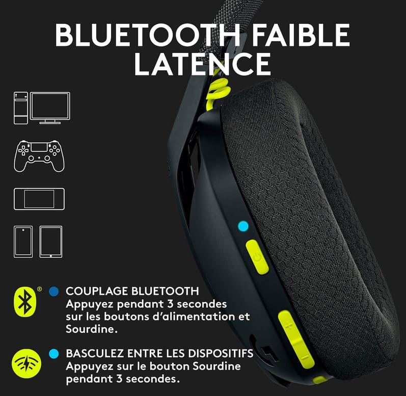 Ce n’est pas tout, le Logitech G G435 est compatible PC, PlayStation 5/4, Nintendo Switch / Switch 2 et dispositifs mobiles pour une polyvalence complète.