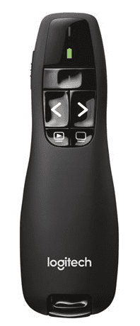 La télécommande Logitech Wireless Presenter R400 est équipée d’un pointeur laser rouge afin que votre public puisse voir distinctement ce que vous pointez. Avec ses commandes intuitives, les boutons sont faciles à trouver et les contours lisses sont doux au toucher. C’est vous qui aurez le contrôle de la première à la dernière diapositive !