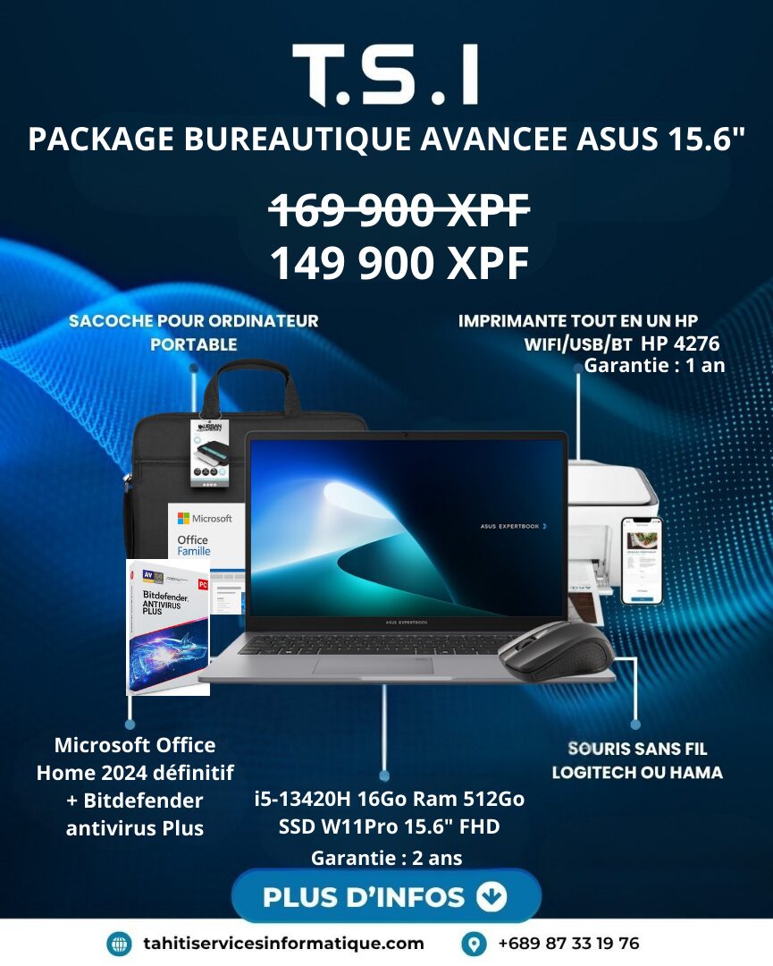 La préparation complète en OPTION et OFFERTE pour les clients qui le désire : démarrage, configuration, création du compte Microsoft, installation logiciels, mises à jour Windows…
