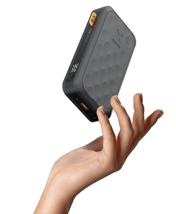Cette batterie puissante et compacte dispose d’une capacité de batterie de 20 000 mAh et de deux ports USB-C PD et d’un port USB-A. La sortie USB C-PD 35 W est parfaite pour recharger rapidement votre smartphone ou votre tablette, par exemple. La Powerbank est en grande partie fabriquée en plastique recyclé, ce was en fait un produit plus durable.